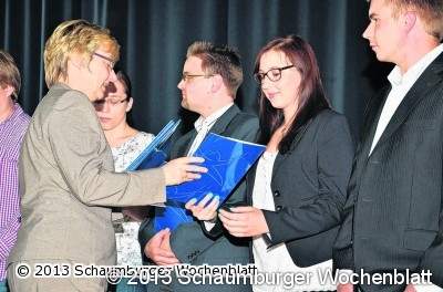 STADTHAGEN (bb). Zehn Schüler der Fachschule Heilerziehungspflege der Paritätischen Lebenshilfe Weserbergland haben im Rahmen einer Feierstunde ihre "Europässe Mobilität" von Kultusministerin Frauke Heiligenstadt in Empfang genommen. Mit diesen Dokumenten können die Schüler ihre Praktika im europäischen Ausland nachweisen. Der "Europass Mobilität" bescheinigt die im Ausland gemachten Lernerfahrungen und die Fähigkeiten und Fertigkeiten der Praktikanten.Frauke Heiligenstadt würdigte das Engagement der Praktikanten der Fachschule Heilerziehungspflege, die für vier bis sechs Wochen in Einrichtungen der Behindertenhilfe in England, den Niederlanden und Österreich gearbeitet hatten. Unter anderem erhielten sie dabei auch einen Einblick, wie in diesen Ländern das Thema Inklusion angegangen wird.Foto: privat