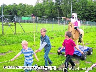 HASTE (em). Den Startschuss für die Jubiläums-Sporttage des ETSV Haste, bei denen an vier Tagen etwa 500 Sportler aktiv waren, bildete der Kanal-Lauf. Am Freitag hieß es dann traditionell "Ein Dorf spielt Fußball". Immerhin sieben Mannschaften kämpften um den Titel. Den Pott gewann nach Neun-Meter-Schießen das Team "Dynamo Tresen", mit frisch gebackenen Abiturienten gespickt, vor dem "Trainerteam Haste". Das Beach-Volleyballturnier auf Sand wurde am Sonnabend von der Mannschaft der "Evangelischen Jugend" gewonnen, die zum ersten Mal teilnahm. Platz zwei erreichten die "Funfighters", die sich speziell für dieses Turnier bedruckte T-Shirts hatten anfertigen lassen. Der Sonntag bildete den absoluten Höhepunkt der Sporttage, daran konnten auch die kräftigen aber kurzen Regenschauer nichts ändern. Früh morgens machten sich Radler auf die 30 Kilometer lange Strecke für den "Haster Triathlon". Nach anschließendem Teebeutelweitwurf und Tennisballzielwurf wurden Irmgard Knoche und Gerd "Fliege" Rohrssen als Sieger geehrt. Die neu gegründete Haster Damenfußballmannschaft hatte ihren ersten Auftritt, ersatzgeschwächt, aber erfolgreich. Die jüngsten Handballer der E-Jugend erprobten in einem Turnier ihr Können auf dem doch für sie ungewohnten Rasen. Schwindende Energie konnte mit Gulaschsuppe, Kaffee und Kuchen, Grillgut und den bei Kindern beliebten Pommes aufgetankt werden. Ein nostalgisches Spiel mit absolutem Seltenheitswert bildete das Einlagespiel Handball Großfeld der HSG Schaumburg Nord gegen die SG Hohnhorst/Haste. Schiedsrichter Reinhard Lorz, der in jüngeren Jahren noch Punktspiele auf dem Großfeld mitgemacht hatte, vermittelte vor dem Spiel erst die wichtigsten Regeln. Sieger wurde die HSG mit 15:10. Mit dem "Kanal-Cup" wurde am Nachmittag ein weiteres Turnier für Fußball-Herrenmannschaften bestritten, das die Reserve des MTV Rehren AR für sich entscheiden konnte. Der Stimmungshöhepunkt war das "Menschenkickerturnier" mit sieben Teams, das nach fast vier Stunden eigentlich immer noch nicht beendet war, wofür jedoch der Regen zuständig war. Die Teilnehmer hatten viel Spaß bei dem Gerangel um den Ball. Es siegte die Mannschaft aus dem neuesten Baugebiet Hastes, "Hohl Garten". Der Treckerclub war mit 13 liebevoll gepflegten Oldtimern vor Ort. Kinder konnten eine Spazierfahrt machen, größere Zuschauer sich beim "Einparken" eines vorgehängten Wagens erproben oder mit dem Trecker fahrend eine Lanze in aufgehängte Zielscheiben stechen. Ebenso benötigten die 30 Kinder, die an diesen "Ritterspielen" teilnahmen, eine Lanze, um in einem wilden Ritt Ringe aufzuspießen. Als zweite Disziplin versuchten je zwei "Ritter" sich gegenseitig vom Schwebebalken herunterzuschubsen. Andere erprobten sich auf dem Sandplatz im Beach-Tennis, auf Wunsch konnten sich die kleinen Gäste das Gesicht mit bunten Motiven schminken lassen. Der Dank des Vorstandes gilt allen ehrenamtlichen Helfern, die diese erfolgreiche Veranstaltung möglich gemacht haben.