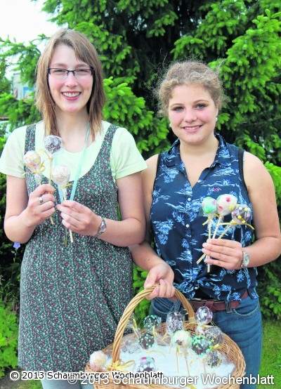 "Cake pops" heißen die bunten Leckerbissen am Stiel, die Leticia Maicher mit der Gruppe der Qualifizierungsküche der PLSW zubereitete. Anschließend verkaufte sie die Süßigkeiten gemeinsam mit ihrer Freundin Sofia von Urff an die PLSW Mitarbeiter.