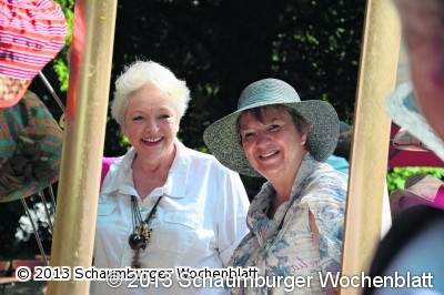 Eine von ihnen ist Mia Frantz aus Bückeburg. Die ehemalige Antiquitäten-Händlerin ist zum dritten Mal als Ausstellerin mit Ehemann Ulrich auf dem Rittergut dabei. Im Angebot hat sie prächtige Stauden und Rosen für den Garten. Dazu eine große Palette an Dekorationen. Drei Tage lang von morgens bis abends sitzen die beiden auf Gartenstühlen auf der Großen Teichwiese.