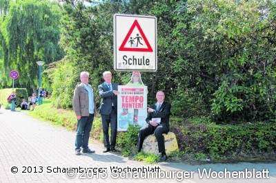 Gerade jetzt nach dem Schulanfang sind viele Kinder unterwegs, denen der Verkehr noch nicht vertraut ist und die erst einmal lernen müssen, sich sicher auf ihrem Schulweg zu bewegen. "Jedes Kind, das sich im Straßenverkehr verletzt, ist eines zu viel, dafür lohnt sich jede Anstrengung", sagt Werner Nickel von der Sparkasse Schaumburg beim Ortstermin an der Grundschule Am Sonnenbrink. Als Sponsor unterstützt die Sparkasse das von der Verkehrswacht Schaumburg initiierte Projekt. "Insgesamt haben wir landkreisweit etwa 150 Hinweisschilder angebracht. Vornehmlich in der Nähe von Schulen und Kindergärten", sagt Kreisverkehrswacht-Geschäftsführer Detlef Hansel. Damit nicht genug: Auch große, über die Straße gespannte Banner sollen die Aufmerksamkeit der Verkehrsteilnehmer auf die Kinder lenken. Damit kein Gewöhnungseffekt eintritt, werden die Banner gewechselt. Stadthagens Bürgermeister Bernd Hellmann begrüßt die Aktion, die für mehr Sicherheit auf dem Schulweg sorgen soll. "Es ist nicht leicht für Eltern, wenn sich die Kinder alleine auf den Schulweg machen müssen. Doch es gehört dazu und wird ja auch von den Schulen gefordert, damit die Kinder selbstständig werden", weiß er aus eigener Erfahrung. In Stadthagen gibt es zudem zwei sogenannte "Tempotafeln", die den vorbeifahrenden Autofahrern die Geschwindigkeit anzeigen. Temposünden werden sofort für alle sichtbar. Die gemessenen Ergebnisse lassen sich darüber hinaus im Nachhinein auswerten, so können weitere Maßnahmen geplant werden. Alle fünf bis sechs Wochen werden diese Standorte variiert. Die effektivste Maßnahme bleibt dennoch vorausschauendes Fahren, angepasste Geschwindigkeit und Aufmerksamkeit – das gilt für alle Verkehrsteilnehmer. Foto: mh