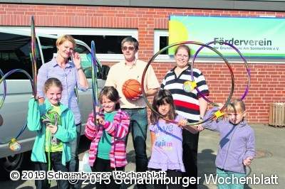 "Pausenhof-Spielzeug unterliegt einem besonders schnellen Verschleiß", weiß Ulrich Krückeberg, Vorsitzender des Fördervereins. Deshalb wird der Fundus an Bällen, Springseilen und anderen Spielzeugen etwa alle zwei Jahre wieder aufgefüllt. Rund 660 Euro hat der Vorstand zum Schulanfang in die Hand genommen, um den Kindern einen neuen Anreiz zur Bewegung in der Pause zu geben. Dass sie sich in den Pausen austoben, sei besonders wichtig für die Konzentrationsfähigkeit von Schülern in dem Alter. Fußbälle, Basketbälle, Hüpfbälle, Springseile, Hula-Hoop-Reifen, Wurfscheiben, Teamwalker und Softbowling mit weichen Bällen und Kegeln ließen die Kinderaugen strahlen. Kräftig packten sie mit an, um alles aus dem Lieferwagen zu laden. Anschließend wurden die neuen Spielgeräte gleich ausprobiert. Und schon wurden die nächsten Wünsche laut: "Wir brauchen auch neue Tore mit Netzen", waren sich die Jungs mit Blick auf die Fußbälle einig. "Verantwortlich für die Spielsachen sind künftig die Viertklässler", erklärte Schulleiterin Petra Ammon. Die Klassen übernehmen abwechselnd, jeweils für eine Woche, den Dienst für die Spielsachen, geben diese in den Pausen aus und sammeln sie anschließend wieder ein.