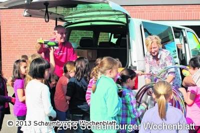 STADTHAGEN (ag). Als Spielzeughändler Dieter Schmidt die Türen seines Lieferwagens aufmachte und lauter kunterbunte Spielsachen zum Vorschein kamen, war es für die Schüler der Grundschule am Sonnenbrink wohl ein ähnliches Gefühl wie an Weihnachten, nur vier Monate und zwei Tage zu früh. Am 22. August überreichte der Förderverein in der ersten großen Pause eine Lieferwagen-Ladung voll neues Spielzeug an die Kinder.