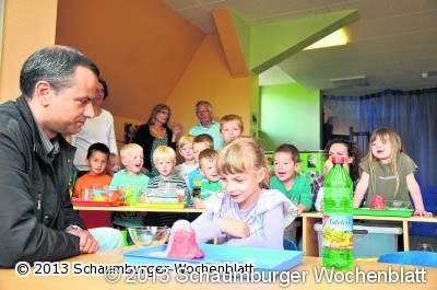 "Geforscht" wird in der Kita bereits seit fünf Jahren, seit 2010 ist sie Mitglied der Stiftung "Haus der kleinen Forscher" geworden. Im vergangenen Jahr wurde die Einrichtung als erste im Landkreis offiziell für das Programm zertifiziert. Neben den Einzelexperimenten werden immer wieder Projektwochen zu einem Thema vorbereitet, nach deren Ende die Kinder mit einem "Forscherdiplom" ausgezeichnet werden. Erziehern und Kindern bleibt genügend Spielraum innerhalb des Konzeptes, um mitzugestalten und mitzuentscheiden, was gemacht wird. Dafür bilden sie sich regelmäßig weiter und beziehen auch die Eltern mit ein. Über den Besuch von Edathy haben sie sich sehr gefreut. "Die Kinder finden es toll, wenn jemand aus dem öffentlichen Leben kommt, der sich für sie interessiert", so Kita-Leiterin Heike Wunderlich Haage. Interessiert ist auch die Gemeinde, der sich die Kita beim letzten Dorffest vorgestellt hat. Eine "runde Sache für die Samtgemeinde", wie der stellvertretende Samtgemeinde-Bürgermeister und Ansprechpartner in Kita-Fragen, Kurt Junior, betont.Foto: nb