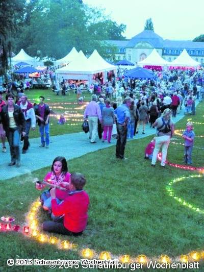 BAD NENNDORF (Ka). Eine Kurstadt mit Park setzt mit Erfolg auf einen Park mit einer Pagodenstadt. Das sagenhafte Parkfestival mit Gourmet- und Lichterfest hielt zahlreiche Höhepunkte und Sinneserlebnisse bereit. Das super Sommerwetter, die kulinarischen Angebote aus elf regionalen Küchen und das vielfältige Rahmenprogramm trugen zum guten Gelingen bei. Tausende Besucher eroberten an den drei Veranstaltungstagen den Kurpark und ließen sich auf eine sagenhafte Reise reichhaltig gespickt mit Margie, Zauber, Musik, Genüssen, Märchen und Illuminationen ein. Eigens dafür verwandelte sich der Kurpark in eine glanzvolle Oase und setzte das historische Schlösschen ins Rampenlicht. Bereits am Freitag hielt es die Bürger nicht zu Hause. Sie überzeugten sich vor Ort von dem Fest der Feste und belagerten die Stände und die Tanzfläche. Die Band Rio servierte Chartbreaker und wurde nur von der Soul Kitchen Band am Samstag-Abend getoppt. Auf der Bühne, gesponsert von der Sparkasse Schaumburg, bewegte sich die Münchener Formation und heizte den Besuchern tüchtig ein. Während am Tage der Rattenfänger von Hameln mit seiner tierischen Schar, faszinierende Stelzenwesen, poetische Darbietungen, Kleinkunst, eine Märchentante, Wassergeister und ein Riesen-Drache für Aufmerksamkeit sorgten, fanden auch Romantik und Sinnesfreuden ihren Platz. Beleuchtete Wasserfontänen sprangen im Takt der Musik in die Höhe, bunte Lichter schlängelten sich auf den Rasenflächen, rote Pylonen ragten in den Himmel, Lichterketten räkelten sich von Ast zu Ast, strahlende Bäume unterlagen einer zauberhaften Illumination und auch das Höhenfeuerwerk brillierte mit Farben und einem roten Herz. Die Fest-Organisatorin Silke Busche, Geschäftsführerin der Kur- und Tourismusgesellschaft, konnte trotz Baumaßnahme an der Musikmuschel ein Event gestalten, welches an kreativem Ideenreichtum kaum zu überbieten ist.