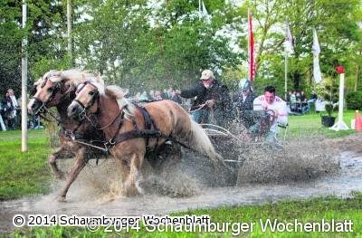 STADTHAGEN (tr). Das "Jump, Drive & Drive"-Rennen beschließt am morgigen Sonntag um 17.30 Uhr das Stadthäger "Reitsport à la Carte"-Turnier. Bei dem Rennen bleibt kein Auge trocken, denn früher oder später führen alle Wege die Teilnehmer durchs Wasser – ob zu Pferd, Auto oder Kutsche. Doch auch vorher bietet der Reit-, Zucht- und Fahrverein Stadthagen den Besuchern auf seiner Anlage in der Schachtstraße ein hochkarätiges Pferdesportprogramm.