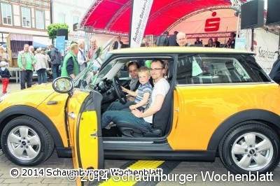 "Doch, das kommt uns sehr gelegen", erklärten Manuela und Sebastian Böger. "Unser Auto ist nämlich gerade kaputt gegangen." Rund 20 Lose hatte die Stadthäger Familie gekauft. Darunter war auch das große Los, das ihnen den Kleinwagen der Marke Mini einbrachte. Das glückliche Händchen bewies dabei der dreieinhalbjährige Sohn Justin, der die Billets ausgesucht hatte. Dafür durfte er nach dem Einsteigen in das neue Auto auch kräftig die Hupe drücken.