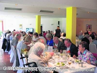 Auf einer extra aufgebauten Bühne war die Show-Küche eingerichtet worden, in der Käfer und Bräumer gemeinsam mit Küchenleiterin Yvonne Schmidt und ihrem Stellvertreter Dirk Feldmann für die rund 130 Gäste Leckeres kredenzten. Als Vorspeise servierten sie lauwarmen Spargel an Vinaigrette mit pochiertem Landei - ein wunderbar leichter Einstieg in das Menü. Dann ging es auf der Bühne rund: es dampfte, brodelte, zischte und nach und nach zog der Duft von leicht gebratenem Gemüse, Pfifferlingen und Garnelen durch den Raum. Als Hauptgang standen asiatische Weizennudeln mit marktfrischem Gemüse und Garnelen sowie Kalbsgeschnetzeltes "Züricher Art" mit Pfifferlingen und kleinen Semmelknödeln zur Wahl. Die Gäste konnten den kompletten Kochvorgang ganz genau beobachten, den ein eigenes Kamarateam sorgte für die Nahaufnahmen, die auf zwei großen Monitoren abgespielt wurden. Da kam der Hunger schon beim Zusehen. Gekrönt wurde das Menü von Käfers Eisspezialitäten auf Fruchtspiegel mit frischen Beeren. Zum Ausklang wurden im Foyer noch Kaffee, Petit Fours und Digestif bei musikalischer Untermalung am Flügel. Foto: mk