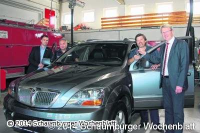 STADTHAGEN (jl). Die Freiwillige Feuerwehr Stadthagen hat am Freitag symbolisch die Schlüssel ihres neuen Kommandofahrzeuges entgegen genommen. Noch präsentiert sich der Kia Sorento in grau, aber schon in wenigen Tagen soll der allradangetriebene SUV frisch lackiert in dem bekannten "Feuerwehrrot" durch Stadthagen und die umliegenden Ortsteile fahren. Zudem muss der fünf Jahre alte Diesel noch mit einer Funk- sowie Signalanlage ausgestattet werden.