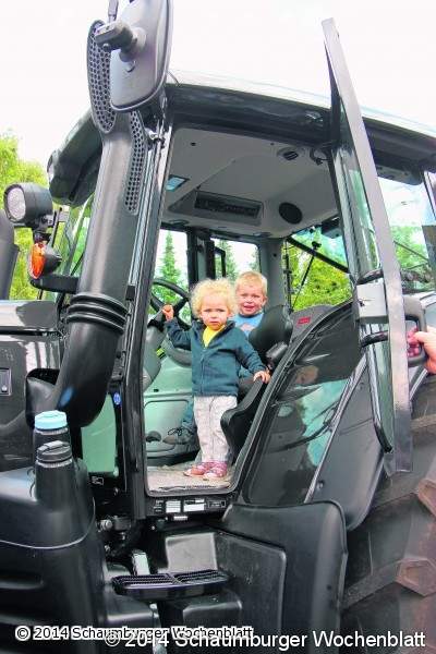 Die Qual der Wahl hatten die anderthalbjährige Leni sowie ihr Bruder Felix (3). Sie konnten sich gar nicht entscheiden, welchen der sieben Valtra-Traktoren sie zuerst erobern sollten. Letztlich fiel ihr Entschluss mit Opas Hilfe auf den T203, einen imposanten Schlepper mit standardmäßigen 204 PS. Der "Tag der offenen Tür" deckte mit insgesamt zwölf verschiedenen Produkten aber nicht nur den land- und forstwirtschaftlichen sowie kommunalen Bereich ab. Mit Rasenmähern, Trimmern, Kettensägen und Co. fand auch der Privatmann das Passende für seine Arbeit im heimischen Garten. Foto: jl