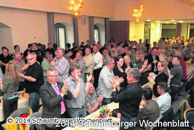 Außerdem richtete Deus gute Wünsche an das Team der Schaumburger Privat-Brauerei. Er hoffe, dass sich der abzeichnende Aufwärtstrend fortsetze und es der Brauerei gelinge, sich aus ihrer schwierigen Lage zu befreien.Deus dankte Bürgermeister Bernd Hellmann für "die gute Zusammenarbeit" in den vergangenen Jahren. Die Schützenfestfreunde erhoben sich zu stehenden Ovationen für den in einigen Monaten aus dem Amt scheidenden Hellmann. Der Bürgermeister betonte in seinem Grußwort, dass sich das Schützenfest nach wie vor größter Beliebtheit erfreue. In der Solidarität, welche die "Jungen Bürger" nach dem Verlust ihres Rottlokals erfahren hätten, zeige sich das hohe Maß an Gemeinsinn und Zusammenhalt unter den Schützenfestfreunden.