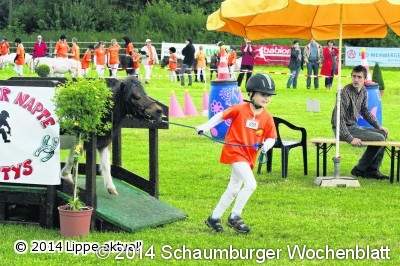 Horn-Bad Meinberg/Vahlhausen (ck). Zum 5. Shetlandpony-Turnier haben sich am vergangenen Wochenende wieder zahlreiche Liebhaber der kleinen Kraftpakte auf der "Hoppewiese" in Vahlhausen getroffen. 165 Teilnehmer von 3 bis 48 Jahre maßen sich auf der Trabstrecke, dem Spring- und dem Geschicklichkeitsparcours. Die Sulkyfahrer absolvierten einen Kegelparcours. Der Höhepunkt des Turniertages war ein Showjumping, ein Wettbewerb im Hochspringen.