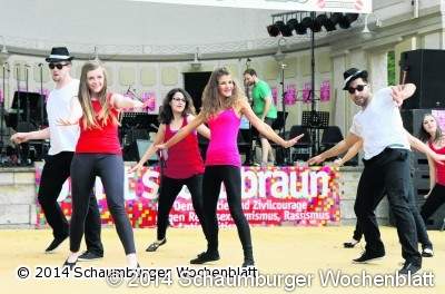 Viel Musik und Tanz gaben den Besuchern einen bunten Eindruck vom kulturellen Miteinander. Indische Tänze, ein Auftritt des Musical-Ensembles "The Batz", die Big Band des Gymnasiums, die "Bad Nenndorf Boys", ein Chor der Schlaffhorst-Andersen-Schule und viele weitere Vorführungen begeisterten das Publikum. Ähnlich abwechslungsreich war das kulinarische Angebot. Deutsche Bratwurst, Lahmacun und Grill-Leckereien des alevitischen Kulturvereins Stadthagen sowie Gebäck der jüdischen Gemeinde Bad Nenndorf standen für die Hungrigen bereit. Eine ganze Reihe verschiedener Spielmöglichkeiten unterhielt die Kinder. Die Gruppe "Stricken gegen Rechts" präsentierte einige ihrer Arbeiten. Besonders auffällig war ein in knalligen Farben gestaltetes Tipi. Auch dieses soll am 2. August ein buntes Zeichen gegen den braunen Aufmarsch setzen.Foto: bb