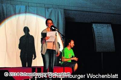 Nach einer Darbietung konnten die Zuschauer nämlich die Vortragenden bewerten mit einem Punktesystem von 1 bis 10. "Von quasi zwecklos bis Überflieger!" Und den Start machten die sieben Teilnehmerinnen und ein Teilnehmer mit dem Vortrag eines Fremdtextes; eigene Textkreationen folgten. Unter den Teilnehmerinnen waren auch Tanja Wente und Inken Weber. Die beiden Slamerinnen hatten im letzten Jahr als Duo den Slam in Stadthagen gewonnen und Tanja nahm auch an den deutschen Slammeisterschaften letztes Jahr teil.