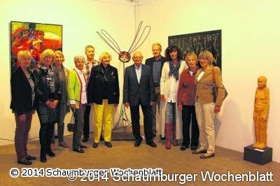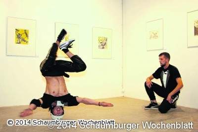 Vor der Kulisse kleiner Figuren und lebensgroßer Köpfe aus Ton sowie an den Wänden hängender Radierungen tanzten Evgenij Zotov und Reza Jackson von der Showgruppe "The Last Action Heroes". Sie machten Saltos, hüpften auf nur einem Arm und wirbelten auf dem Kopf stehend über den Boden. Kurz um: Sie formten ein lebendes Kunstwerk. "Bei dieser Ausstellung handelt es sich im wahrsten Sinne des Wortes um bildende Kunst", betonte die stellvertretende Bürgermeisterin Ulrike Koller in ihrem Grußwort. Bildende Kunst wirke durch sich selbst, bedürfe keiner Interpretation und könne heute auch prozessorientierter gefasst werden. Davon überzeugen konnten sich die Kunstinteressierten anschließend selbst. So etwa an dem Gemeinschaftswerk von Jürgen Dammit, dessen Leidenschaft die Bildhauerei ist, und Manuela Johne-Sander, die unter anderem auf Holz gearbeitete und gemalte Werke zeigt. Aus Obernkirchener Sandstein hat Dammit mit Hammer und Meißel einen 60 Zentimeter großen Kopf ausgeschlagen und dahinter noch einen Torso angebracht, um "die Spannung zu erhöhen", wie der 86-Jährige erklärte. Die Bewegung liege in den Haaren. Denn die Dreidimensionalität des Frauenkopfes wird erst deutlich, wenn der Betrachter ihn dreht. Johne-Sander hat die Figur bemalt. Der Clou: Im Hintergrund hängt ein Bild mit dem gleichen Kopf als Pendant. Dass Kunst jung halten kann, zeigen die filigran gearbeiteten Tonfiguren der 90-jährigen Irmgard Ahrens. Waltraud Binöder präsentiert kleine und große Figuren aus Ton und neuerdings auch aus Holz, ebenfalls der Bildhauerei verfallen sind Renetta Braatz und Jutta Jones. Metallkünstler Matthias Mauritz zeigt, was er alles aus dem Werkstoff formen kann, zum Beispiel eine riesige Libelle, die sogar einige Zentimeter nach vorne und hinten "fliegen" kann. Große dekorative Köpfe aus Ton, die gleich hinter dem Eingang der Zehntscheune von der Wand blicken, stammen von Alois Schulze-Dorfkönig. Die Radiererinnen Sabine Korn und Eva Maria Trieps stellen aufwendige Druckgrafiken aus, Gudrun Wentz hat sich Tonarbeiten verschrieben. Noch bis zum 26. September ist die Ausstellung freitags von 14 bis 18 Uhr, sonnabends und sonntags von 11 bis 16 Uhr sowie während der Weserrenaissance-Tage am Sonnabend, dem 13. September, von 13 bis 22 Uhr und am Sonntag, dem 14. September, von 10 bis 18 Uhr geöffnet. Foto: jl