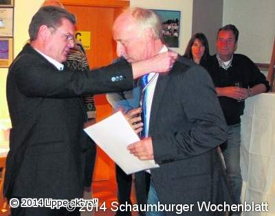 Blomberg (la/lig). Der Ehrenvorsitzende der Luftsportgemeinschaft (LSG), Wolfgang Wienkemeier wurde durch den Präsidenten der Deutschen Aeroclubs Landesverband Nordrhein-Westfalen, Stefan Klett mit der Goldenen Plakette geehrt. Die zweithöchste Ehrung des Landesverbandes, die auf Vereinsebene vorgenommen werden kann, wird nur maximal zwei- bis dreimal im Jahr an Mitglieder des Landesverbandes für verantwortliche ehrenamtliche Tätigkeit vergeben.
