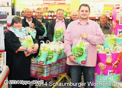 Oerlinghausen-Lipperreihe (kd). Großzügig haben sich die Kunden des "LiLi"-Marktes in Oerlinghausen-Lipperreihe gezeigt. Zugunsten der Tafel haben sie zu je fünf Euro insgesamt 169 Spendentüten mit haltbaren Lebensmitteln erworben. Die Aktion geht auf eine Initiative der Rewe Handelsgruppe und nahkauf zurück. Unter dem Motto "Tische decken" haben sie bundesweit zwei Wochen lang ihre Kunden zum Spenden aufgerufen. Im "LiLi"-Markt wurde für die Ausgabestelle Leopoldshöhe-Asemissen der Tafel Bad Salzuflen gesammelt. Jens Vollmer, Auszubildender im ersten Lehrjahr, hat den Lipperreiher Kunden die Spendenaktion der Tafel näher gebracht. Der Inhalt der Tüten bestand aus Spaghetti, Sonnenblumenöl, Orangensaft, Tee, Mehl, Salz, Backpulver, Champignons und passierten Tomaten.