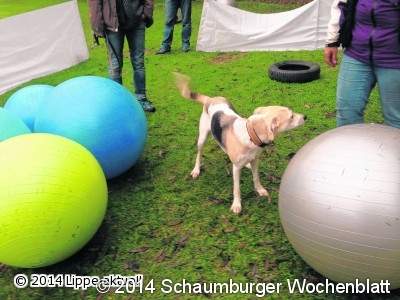 Wer am Eingang an dem Geschicklichkeitsparcours von Trainerin Kathrin Schößler noch vorbeigekommen war, wurde an der nächsten Station dann zur "Nasenarbeit" abgefangen. Hier konnten sich Frauchen und Herrchen schnell davon überzeugen, dass der eigene Hund ein großes Talent hat, wenn es um das Suchen von versteckten Leckerlies geht. Weiter ging es zu verschiedenen Elementen aus dem Turnierhundesport, wie Slalomlaufen und über Hürden und Hindernisse springen. Wer dachte, dass es kein Problem für den Vierbeiner ist, durch einen Tunnel oder über einen Laufsteg zu gehen, sah sich manchmal eines Besseren belehrt. Hier half Trainerin Martina Günther aber mit viel Geduld und guten Tipps, damit das Team auch diese Aufgabe mit Erfolg bestand. Der Verein betreibt den Turnierhundesport seit vielen Jahren erfolgreich bis hin auf Bundesebene. So wurde Vereinsmitglied Volker Möwe als einziger Starter aus dem Landesverband Ravensberg-Lippe gerade erst vor 14 Tagen Vizemeister auf der Deutschen Meisterschaft des VDH (Verband für das Deutsche Hundewesen), auf der sich die besten Turnierhundesportler aus ganz Deutschland messen.