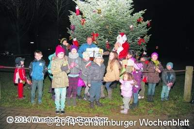 IDENSEN (gi). Das war eine gute Idee der Dorfwerkstatt. Vom Dorfplatz nahmen rund 50 Teilnehmer am ersten Fackelumzug durch die Feldmark teil. Die Suche nach dem Nikolaus dauerte rund eine Stunde. Dann war der Dorfplatz wieder erreicht und der Nikolaus auch zur Stelle. Bei offenem Feuer und dem Singen von Weihnachtsliedern (begleitet von Anton Grießmann mit der Trompete und Andreas Sagebie mit Gitarre) gab es noch ein gemütliches Beisammensein bei Glühwein und Punsch. Foto: gi