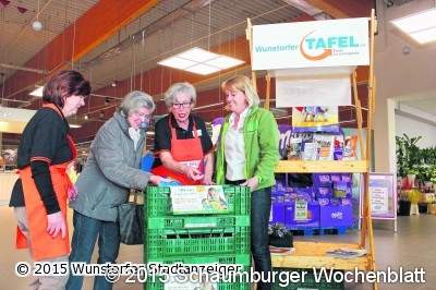 WUNSTORF (tau). "Kauf eins mehr!" So lautete eine erfolgreiche Aktion der Wunstorfer Tafel bei Marktkauf. Die Kunden spendeten reichlich, so dass mehrere Kisten voll mit Waren zusammenkamen. Vor allem um länger haltbare Lebensmittel und Drogerieartikel baten die ehrenamtlichen Helfer des Tafelvereins. Mehl, Zucker, Speiseöl, Reis, Nudeln, Marmelade, Süßigkeiten und verschiedene Konserven wanderten in den Spendenkorb. Einige Kunden unterstützten zusätzlich auch mit Geld die Arbeit des Vereins und kamen am Stand mit den Mitarbeitern ins Gespräch."Wir wollen präsent sein und zeigen wie wichtig es ist, Bedürftigen zu helfen", sagt Ursula Jungbluth. Die Zahl derer, die an den Ausgabetagen die Tafel aufsuchen, nehme weiter zu, so die ehrenamtliche Mitarbeiterin weiter. Sie weiß, ein Mangel herrsche oftmals bei Waren mit langem Haltbarkeitsdatum. Deshalb organisiere der Verein immer wieder solche Spendenaktionen. Das Unternehmen Marktkauf unterstützt ebenfalls den Verein regelmäßig mit Lebensmittelspenden und reicht auch gespendete Pfandbons an die Tafel weiter. Foto: tau