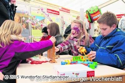 Andere der weichen Standortfaktoren, von denen Kohlmeier gesprochen hatte, verteilten sich über viele Ausstellungsflächen: während der Seniorenbeirat herausfinden wollte, welche Interessen in der Generation 60+ besonders oft vertreten sind, zeigte das Netzwerkbüro ‚Ehrenamt vor Ort’ die Vielfalt seiner Projekte. Kinder kamen am Stand der Stadt auf ihre Kosten – die Bauklotz- und Geduldspiele dort nutzte aber auch gerne mancher Erwachsene. Für Eltern gab es nebenbei Informationen zu Kindertagesstätten und anderen Betreuungsmöglichkeiten für kleine Kinder.