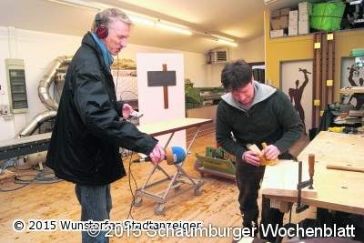 WUNSTORF (gi). Einen besonderen Besuch konnte Tischlermeister Roland Krautwald in seiner Werkstatt begrüßen. Hörfunkjournalist Andreas Brauns kam mit seiner Aufnahmetechnik, um Krautwald zu seinen künstlerischen Kreuzobjekten zu befragen, die er seit Jahren immer wieder für Kirchen, Konferenz- und Privaträume in vielfältigen Ausdrucksformen und Materialien geschaffen hat.