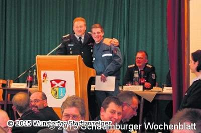Aber auch davon, dass 50 Jugendliche in aktive Wehren übernommen wurden. Wie aktiv einerseits die Jugendfeuerwehren agieren, andererseits der Kreisjugendfeuerwehrwart selbst, davon zeugte der lange Bericht Schillers. Das Kreisjugendfeuerwehrzeltlager war wieder einmal ein Höhepunkt, herausragend aber auch der erste landesweite Integrationstag der Jugendfeuerwehren, der in Rehburg stattfand. Beim diesjährigen Zeltlager in Uchte wartet ein zusätzlicher Höhepunkt auf die Jugendlichen: dann feiert die Kreisjugendfeuerwehr ihr 50-jähriges Bestehen. Die beiden Stellvertreter Schillers – Enno Schomerus für den Süden Nienburgs, Cord Meyer für den Norden – hatten ebenfalls viel zu berichten. Wichtigste Botschaft für die Versammlung von den beiden und entsprechend mit Applaus quittiert war aber: "Wir haben viel Spaß gehabt." Der erfrischenden Rede von Stefan Block, der in den vergangenen zwei Jahren Jugendsprecher der Kreisjugendfeuerwehr war und immer noch Landessprecher ist, fügte Schiller großes Lob an ihn und seine Stellvertreterin Hellen Berghorn an. Jugendarbeit könne man organisieren – man könne sie aber auch an den Jugendlichen vorbei organisieren.