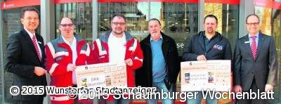 WUNSTORF (mk). "Wunstorf, Stadt mit mee(h)r" ist der Titel des diesjährigen Wunstorf-Kalenders, aufgelegt durch die örtliche Stadtsparkasse. Auf der Rückseite der Monatsseiten, ist bereits seit mehreren Jahren auch der Wunstorfer Lehrer und Autor Stephan Rykena mit seinen Kurzgeschichten vertreten. Mit einer Garantie zum Schmunzeln, aber auch zum Um- und Nachdenken, nehmen seine Geschichten die Leser mit auf eine bunte Reise durch den grauen Alltag. Um Wunstorf etwas zurückzugeben und in dem Wissen um die oft schwierige finanzielle Lage der vielen kleinen sozialen Einrichtungen und Vereine, spendet Rykena bereits seit Jahren sein Kalender-Honorar an unterschiedliche Wunstorfer Institutionen. In diesem Jahr dürfen sich das Deutsche Rote Kreuz - Ortsverband Wunstorf - sowie die Johanniter - Ortsverband Wunstorf - über je 1570,42 Euro freuen. Bei einem gemeinsamen Termin nahmen Jörg Rothbart und Christoph Wißmann, DRK, sowie Timo Brüning, Die Johanniter, die Spende von den Stadtsparkassenvorständen Frank Wiebking und Heiko Menz, sowie Autor Stephan Rykena in Empfang. Beide Vereine freuen sich sehr über die großzügige und unerwartete Unterstützung. Über die Verwendung werde man in den nächsten Tagen beratschlagen, an Investitionsmöglichkeiten hapere es bei beiden Organisationen jedoch auf keinen Fall. Auch im kommenden Wunstorf-Kalender mit dem Titel "Wunstorf - meine Heimat" wird Rykena mit seinen Kurzgeschichten vertreten sein. Alle Wunstorfer haben die Möglichkeit im Rahmen des aktuell laufenden Fotowettbewerbs einen eigenen Beitrag zu dem Kalender beizusteuern. Gefragt sind Bilder, auf denen der Fotograf aufzeigt, warum er sich in Wunstorf und den Ortsteilen beheimatet fühlt. Neben der Veröffentlichung im Kalender, winken den Gewinnern der Plätze 1 bis 3 lukrative Geldpreise und Freiexemplare des Kalenders. Teilnahmebedingungen sind in allen Geschäftsstellen der Stadtsparkasse Wunstorf erhältlich. Bei Fragen können sich Interessenten an Maren Huwatscheck aus der Abteilung Werbung und Marketing der Stadtsparkasse Wunstorf unter 05031/102-1632 wenden. Foto: privat