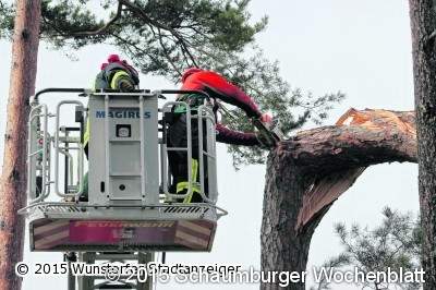 WUNSTORF (gi). Sturm "Niklas" forderte die freiwilligen Feuerwehren der Stadt Wunstorf heraus. Ab Dienstagmittag war Hochbetrieb in der Feuerwache an der Barnestraße. Ein sechsköpfiges Team unter Leitung des stellvertretenden Stadtbrandmeisters Volker Kentrat erfasste die Meldungen und schickte die Fahrzeuge zu ihren Einsatzorten. 51 Einsätze mussten im gesamten Stadtgebiet bewältigt werden. "Die freiwilligen Feuerwehrfrauen und Feuerwehrmänner haben großartige Arbeit geleistet", lobte Kentrat. Nahezu alle Wehren der Stadt wurden alarmiert. Neben einigen kleineren Bäumen wurden auch erhebliche Gefahren beseitigt.