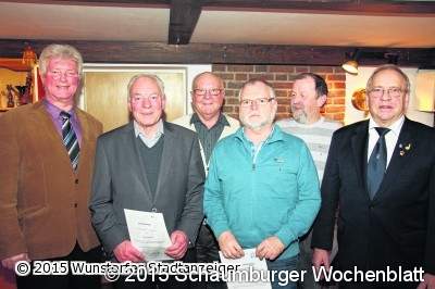Der Vorsitzende des Kreis-chorverbandes Hannover, Dirk Elmenthaler, ehrte die fördernden Mitglieder Peter Prauss (50 Jahre), Walter Riechers (40 Jahre), Heinz Bonhorst (25 Jahre) und Kurt Steinke (25 Jahre).