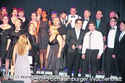 WUNSTORF (gi). Das war absolut schwungvoll und überzeugend, was zum Meervocal-Auftakt geboten wurde: ein Konzert mit Jazzchören und Bigbands. Meervocal startete im Stadttheater mit einem Experiment, was glückte. Bigband und Vokal-Solisten spielten gemeinsam, es entstand ein neuer Sound. Das gefiel den begeisterten schätzungsweise gut 200 Besuchern. Den Auftakt des spannenden Experiments von Jazzchor und Bigband machten die Bigband Wunstorf, Leitung Hans Wendt der Musikschule Wunstorf und ein Solisten-Ensemble von "Twist & Shout", Leitung Friedrich Kampe. Danach traten der Jazzchor "after six", Leitung Anja Ritterbusch und die Bigband "clean, fine and funky" der Musikschule Hannover, Leitung Achim Kück auf. Ritterbusch und Kück kennen sich gut und wagten das neue Projekt. Und es klappte, die 30 Stimmen des Chores verschmolzen mit dem 20-köpfigen Klangkörper der Bigband. Es wurde ein abwechslungsreiches Programm aus swingenden Standards, funky Grooves und unter die Haut gehenden Balladen geboten. Gefehlt haben auch nicht Arrangements von den New York Voices oder Peter Herbolzheimer. Das Motto des gelungenen Abends hieß "sing, sing, sing - all You got to do is swing". Foto: privat