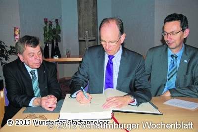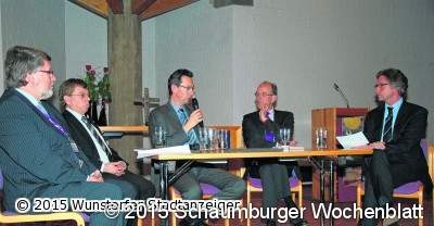 NEUSTADT/WUNSTORF (dgs/gi). Hoher Besuch beim Kirchenkreistag in Neustadt: Landesbischof Ralf Meister nahm zusammen mit den Bürgermeistern aus Wunstorf und Neustadt, Rolf Axel Eberhardt und Uwe Sternbeck, an einer Podiumsdiskussion zum Verhältnis Staat, sprich Stadt, und Kirche teil. Unter Hinweis auf den Loccumer Vertrag wies Meister zwar auf die Trennung von Kirchen und Staat hin. Kirche habe aber einen öffentlichen Auftrag, solle sich einmischen, betonte er. Einig waren sich Bürgermeister und Kirchenvertreter, dass die Zusammenarbeit auf kommunaler Ebene sehr partnerschaftlich sei. Das gelte für Kindergärten ebenso wie für die Friedhöfe.
