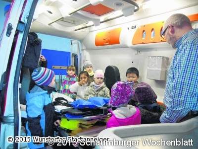 Freundschaftlich war der Umgang der Rettungskräfte und ehrenamtlichen Helfer mit den Kindern. Die Kinder haben festgestellt, wie laut das Martinshorn ertönt und wie schnell alles gehen muss, wenn es heißt "Notfall".