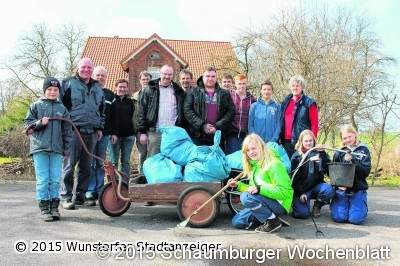 WINZLAR (jan). "Winzlarer Bürger", sagt Ortsbürgermeister Rüdiger Dreßler, "das bezeichnet gut den Kreis, der mitgemacht hat." Bevor es Würstchen und Kartoffelsalat für alle Helfer der Müllsammelaktion in und um den Ort gibt, werden noch die letzten Müllsäcke von diesen Winzlarer Bürgern zusammen getragen. Wie in jedem Jahr hat der Ortsrat eingeladen, sich am Frühjahrsputz in Winzlar zu beteiligen. Ortsrat, Jugendfeuerwehr und andere Bürger sind zusammen gekommen – insgesamt rund 20 Winzlarer, die sich für einen Vormittag als Müllsammler verdingen.