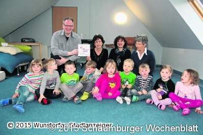 HAGENBURG (gi). "Wir machen die Musik" ist ein Projekt des Verbandes niedersächsischer Musikschulen und dem Ministerium für Wirtschaft und Kultur. So früh wie möglich und so flexibel wie nötig, das sind die beiden Ansprüche, um die sich alles dreht. Das Projekt gibt es seit sechs Jahren, die Kindertagesstätte Zwergenburg ist seit 2012 Partner. Für den qualifizierten Musikunterricht ist Lehrkraft Rosa Prujanski von der Kreisjugendmusikschule Schaumburg zuständig. Im laufenden Schuljahr kooperieret die Kreisjugendmusikschule mit zehn Kitas und vier Grundschulen (darunter seit einigen Jahren auch die Kita Indianerdorf und die Grundschulen Sachsenhagen und Hagenburg). Über 450 Kinder erhalten insgesamt 55 Stunden Unterricht in der Woche. Gesichert ist die Finanzierung bis zum Ende des Schuljahres 2016/2017, über eine Fortführung des Programms wird verhandelt. Besuch bekam vor einigen Tagen die Zwergenburg vom Leiter der Kreisjugendmusikschule, Lutz Göhmann. Er überreichte Leiterin Marita Völlers die Plakette des Landesverbandes niedersächsischer Musikschulen. Damit soll die verlässliche und langjährige Bildungspartnerschaft zwischen Musikschule und Kita dokumentiert werden. Foto: gi