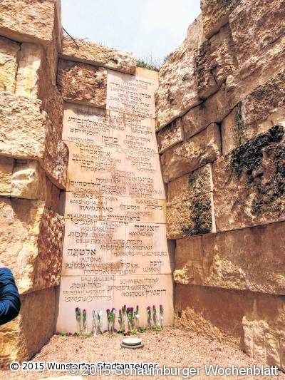 Im Gepäck hatte Eberhardt aber auch zwei Exemplare eines Buches von Heiner Wittrock, der sich mit dem Schicksal der Wunstorfer Juden beschäftigt hat. Eine Ausgabe erhielt die Bibliothek der Holocaust-Gedenkstätte Yad Vashem in Jerusalem. Ein Teil der Gedenkstätte trägt den Namen "Tal der verlorenen Gemeinden". Dort sind 107 Steinwände zu sehen, die mit den Namen von über 5000 jüdischen Gemeinden versehen sind, die während der Nazi-Tyrannei ganz oder teilweise vernichtet wurden. Auf einem der Steine war auch Wunstorf zu lesen. "Das war für mich ein bewegender Moment", berichtet Eberhardt.
