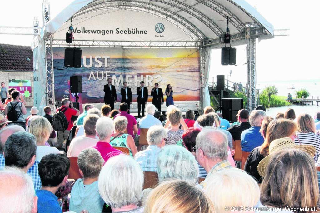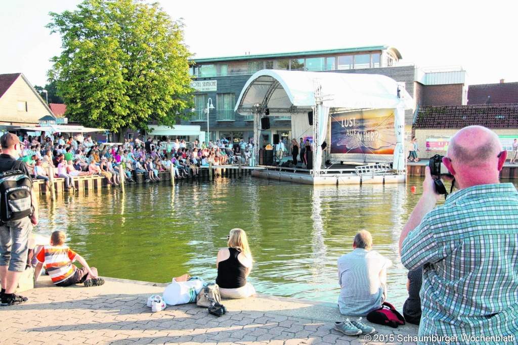 STEINHUDE (gi). Sommer, Meer, ein Drink und dazu gute Musik – all das präsentierte die Internationale A cappella-Woche Hannover beim diesjährigen Kultursommer der Region Hannover. Und weil immer ein besonderer Austragungsort ausgesucht wird, passte die Seebühne im Steinhuder Meer den Organisatoren der Region ausgezeichnet in das Konzept. "Wir haben uns natürlich sehr darüber gefreut, unsere Seebühne für den A capella-Abend als Veranstaltungsort bereit zu stellen", sagte unserer Zeitung Geschäftsführer Willi Rehbock von der Steinhuder Meer Tourismus GmbH. Der Publikumszuspruch war außerordentlich groß, die Sitzplätze fanden reißenden Absatz. Das Wetter spielte ebenfalls mit, so zeigten sich alle zufrieden. Und diese große Qualität der Darbietungen kostete keinen einzigen Cent Eintritt. "Im nächsten Jahr beabsichtigen wir, derartige A capella-Auftritte verstärkt in unser Seebühnen-Programm einzubauen", berichtete Rehbock. Die Kultur Hannover sorgte auf der Volkswagen-Seebühne für hochkarätige nationale und internationale Gäste. Es begann die Gruppe "HörBänd" aus Hannover, sie begeistert das Publikum seit Frühjahr 2014. Die fünf Musiker traten bei den unterschiedlichsten Veranstaltungen auf, sie begeistern durch ihre Mischung aus bekannten Melodien und deutschen Eigenkompositionen von Klassik bis Pop. Originell ihre Text zu den eigenen Arrangements wie "Auf der Mauer, auf der Lauer …". Doch damit nicht genug, es gab einen weiteren musikalischen Leckerbissen: die "Singers" aus Kopenhagen. Die sechs Sänger sind absolute Routiniers, sie stehen seit 1993 auf der Bühne. Ihre Konzertreisen führten durch ganz Europa und Asien. Das Programm umfasste internationale Pop- und Jazzsongs von R. Kelly, Michael Jackson bis hin zu Stevie Wonder. Auch wurde das Publikum mit einbezogen. Drei Veranstaltungen bietet die Seebühne noch an: am 29. August ab 15 Uhr "Body & Soul" mit der Big Band aus Stadthagen, am 30. August ab 11 Uhr einen klassischen Frühschoppen mit "Happy Jazz & Co" und zum Abschluss am 5. September ab 16 Uhr mit dem Posaunenchor Steinhuder Meer-Großenheidorn. Foto: gi