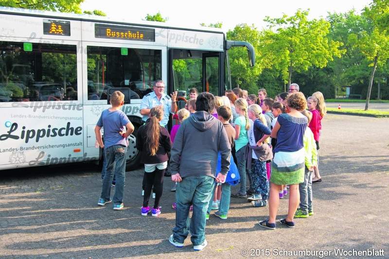 Bad Salzuflen. Was macht man in einer Busschule? Das fragten sich die Schüler des 5. Jahrgangs der Realschule im Schulzentrum Aspe. Was es damit auf sich hat, erfuhren die Kinder jetzt. Pünktlich zum Schulstart lernen sie, wie man sich richtig im Straßenverkehr verhält. Die Busschule wurde wie im vergangenen Jahr den Grundschulen und weiterführenden Schulen angeboten. Vier Klassen der Realschule Aspe wurden am 20. August klassenweise geschult. Die Stadtwerke haben ein Busunternehmen beauftragt, diese besonderen Unterrichtsstunden durchzuführen. Das Klassenzimmer wurde gegen den Parkplatz des Schulzentrums getauscht. Polizist Detlef Jopt hat dort gemeinsam mit dem Busschultrainer den Kindern anschaulich erklärt, wie man sich im Bus und an der Bushaltestelle verhält, um Gefahren zu vermeiden. Neben dem optimalen Verhalten im Bus, gehörte zum theoretischen Teil auch die Erklärung der Beschilderung. Nach der Theorie erfolgte dann die Praxis: Das richtige Verhalten beim Ein- und Aussteigen wurde mit den Kindern geübt, denn auch hierbei können Gefahren entstehen. Polizist Detlef Jopt zeigte den Schülern mit Hilfe eines Kanisters, dass er durch den Gang fliegt, wenn der Bus nur eine leichte Bremsung macht. Damit machte er den Kindern deutlich, dass man sich immer festhalten muss. Den Schulranzen sollen die Kinder beim Einsteigen in der Hand tragen, damit sie das Kind hinter sich nicht verletzen. Während der Fahrt soll der Tornister zwischen den Füßen oder auf den Knien stehen, um ein Umherfliegen im Bus zu vermeiden. "Wir sind in diesem Jahr an sechs Schulen und unterrichten rund 500 Kinder", freut sich Daniela Drewes vom Bereich Stadtbus der Stadtwerke.