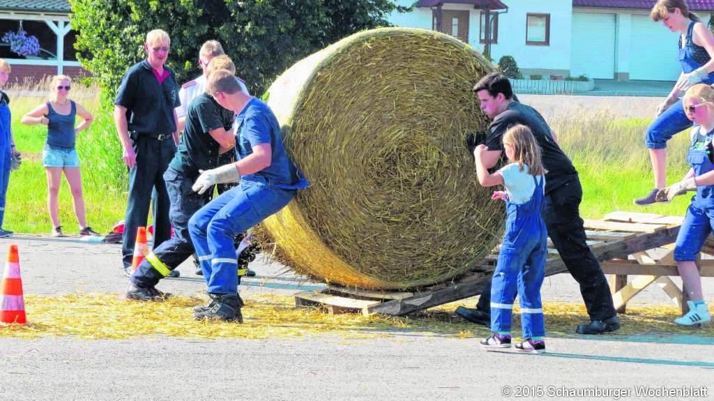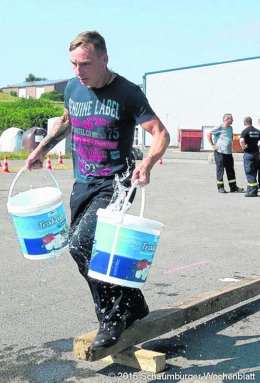 Die Elbrinxer hatten sich als Gastgeber schon einiges einfallen lassen, um möglichst unterhaltsame Aufgaben anzubieten. "Wir haben das im Team gemeinsam erarbeitet", berichtet Elbrinxens Löschgruppenleiter Ulrich Tintel. Alle zu absolvierenden Stationen hatten neben dem Spaß, der natürlich im Vordergrund stand, auch durchaus Bezüge zu feuerwehrtechnischen Anforderungen, die bei ernsthaften Einsätzen natürlich unter ganz anderen Bedingungen auftreten. Dennoch: Der Ehrgeiz aller Beteiligten war durchaus geweckt, und alle Aktiven nahmen die Spiele durchaus ernst. Bei sommerlichen Temperaturen waren speziell die Wasserspiele natürlich sehr begehrt. Da musste beispielsweise an der Storchenstation vorbei eine Wasserstrecke mit acht C-Rohren aufgebaut und eine Zielklappe mit dem Strahlrohr getroffen werden, oder es galt eine Zisterne über eine längere Wegstrecke über eine Balancestande hinweg zu füllen. Ziel einer weiteren Aufgabe war es aus zweimal je vier Saugschläuchen eine Acht zu formen, wobei die beiden Ringe ineinander verschlungen sein mussten. Kraft und Geschick waren gefordert, als es darum ging, einen mannshohen, schweren Strohrundballen über einen Hindernisparcours zu rollen. Was sich bei "Fliegender Teppich" anhört wie ein Märchen aus tausend und einer Nacht, war aber nur für ein Mitglied jeder Gruppe bequemer: Das musste sich von je vier Kameraden in einer Decke tragen lassen, ohne dass dabei der Boden berührt wurde. Wie auch bei den anderen Saufgaben wachten Schiedsrichter darüber, ob die Aufgaben auch ordnungsgemäß absolviert wurden. "Um die Neutralität zwischen den Mannschaften zu garantieren, haben wir dazu Kameraden aus Schieder-Schwalenberg als Schiedsrichter eingeladen, die uns gern dabei geholfen haben", erklärt Tintel. "Wir unterstützen natürlich dort im Gegenzug auch, wenn sie ihre Spiele durchführen." Es ging also alles mit rechten Dingen zu, und so warteten alle gespannt auf die Auswertung der Ergebnisse. Die beste Mannschaft stellte diesmal der Löschzug Lügde, gefolgt von der Löschgruppe Niese, dem Löschzug Rischenau, einer Gruppe aus Lehrgangsteilnehmer aus der gesamten Feuerwehr Lügde, die aktuell Lehrgänge am FAZ in Lemgo besuchen, der Löschgruppe Falkenhagen, der Löschgruppe Sabbenhausen, der Löschgruppe Wörderfeld, der Löschgruppe Hummersen und dem Gastgeber auf dem letzten Platz. Bei den Jugendwehren siegte Rischenau vor Lügde Kernstadt 2, Wörmketal und Lügde Kernstadt 1. Damit wird der Löschzug Lügde 2017 den Wettbewerb um den Stadtbrandmeister-Pokal ausrichten. Die Trophäe überreichte der Leiter der Freiwilligen Feuerwehr Lügde, Wolfgang Kornegger, dem Siegerteam. Natürlich gab es am Rande der Wettkämpfe auch genügend Gelegenheit zum zwanglosen Treffen. "Das ist ja auch der Sinn dieser Veranstaltung", meinte der stellvertretende Leiter der Lügder Feuerwehr, Jörg Jakob. "Hier trifft man sich mal nicht unter Einsatz- oder Dienstbedingungen sondern kann sich in lockerer Atmosphäre unterhalten und feiern. Das fördert auch das Gemeinschaftsgefühl unter den Kameradinnen und Kameraden aus den Feuerwehren der Kernstadt und der Ortsteile." Das war auch der Ursprungsgedanke, der nach der Großgemeindebildung zu diesem Wettbewerb geführt hatte. Ein dickes Lob für ihre hervorragende Vorbereitung und Ausrichtung dieser Traditionsveranstaltung kassierte die Löschgruppe Elbrinxen sowohl vom Stadtkommando als auch von Bürgermeister Heinz Reker als auch von Ortsbürgermeister Hermann Wenneker. "Für uns als Stadt ist es wunderbar zu sehen, wie unbelastet die Atmosphäre zwischen den Feuerwehren der Großgemeinde ist", freute sich der Bürgermeister.