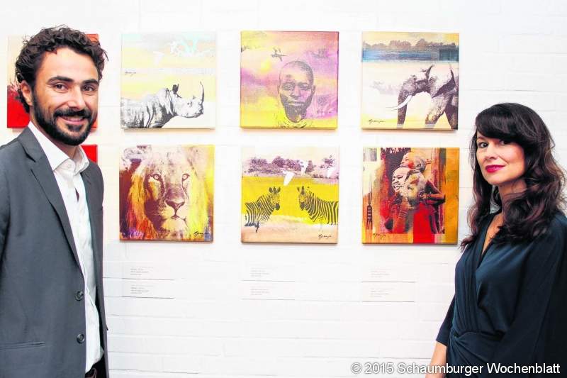 LOCCUM (jan). Zwei Künstler, eine Leinwand und eine Ausstellung: gemeinsam hat das Ehepaar Frances Schandera-Duarte und Everett Duarte Bilder vom afrikanischen Kontinent gestaltet und zeigt sie im Religionspädagogischen Institut Loccum (RPI).Löwen, Zebras, Elefanten, Nashörner und auch Menschen – die Bewohner Afrikas faszinieren das Künstler-Ehepaar und an ihnen entzündet sich ihre Kunst. Was ihnen vor die Kamera gekommen ist, bringen sie gemeinsam auf Leinwände, stellen es zu Erzählungen von Afrika zusammen und bearbeiten es mit Acryl. In warmen Farbtönen entsteht so auf den Fluren des RPI ein Eindruck von jenem Kontinent, wie er zumindest teilweise heute noch ist, wie der Südafrikaner und die Deutsche ihn präsentieren möchten – auch und gerade vor dem Hintergrund, dass dieser Elefant oder jenes Nashorn vielleicht eben in diesem Augenblick Wilderern zum Opfer fallen. Als farbig, eigenwillig und fragend bezeichnet Steffen Marklein, der im RPI für die Ausstellungen zuständig ist das "African Kaleidoskope".