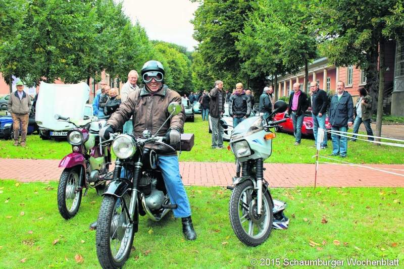 Achtmal? Ungefähr so oft ist das Dröhnen der Motoren bereits in der ehemaligen Kuranlage erklungen, wenn Helms zu dem jährlichen Treffen eingeladen hat. Enttäuscht worden ist er auch dieses Mal nicht: trotz des herbstlich anmutenden Wetters kamen solche, die Fahrzeuge mit dem "H" als Zusatz im Nummernschild oder eben "oben ohne" unterwegs sind, angebraust. Aus Diepholz und Nienburg, aus Schaumburg und Hannover, aus Minden, Osnabrück und vielen anderen Landkreisen sind sie angereist, um ihre Fahrzeuge zu zeigen und mit anderen Fahrern ins Gespräch zu kommen. Und auch an etlichen Schaulustigen, deren fahrbare Untersätze nicht für die kleine Schau auf dem Rasen geeignet waren, mangelte es nicht. Klaglos stellten sie ihre Autos jenseits der "Romantik" ab und überlegten beim Schlendern entlang der Reihen, welches wohl ihr Traum-Auto sein könnte, wenn sie bereit wären, sich ebenfalls solch ein leicht extravagantes Hobby zu leisten. Foto: jan