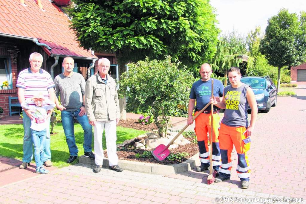 HAGENBURG (gi). Der Bauhof der Samtgemeinde hat seit drei Jahren fünf Beschäftigte, darunter vier Saisonkräfte, für die Beetpflege eingesetzt. Dadurch habe sich der Zustand der Grünanlagen deutlich verbessert. Das spüren auch die Bewohner der Straßen Reinhardsweg/Hopfengarten/Vorm Tore. Sie lobten die Mitarbeiter des Bauhofes. "Es ist eine große Leistung, die Leute machen einen Superjob", so Axel Keil. Er selbst pflegt ein Beet genauso wie die Familie Fenk. Bürgermeister Josef Vorderwülbecke hob das Engagement der Anwohner hervor. Er wünscht sich im Rahmen einer Patenschaft mehr Bürger, die Beete vor ihrer Haustür pflegen, um den guten Zustand weiter aufrecht zu erhalten. Der Bauhof könne nicht alles zeitnah erledigen. Foto: gi