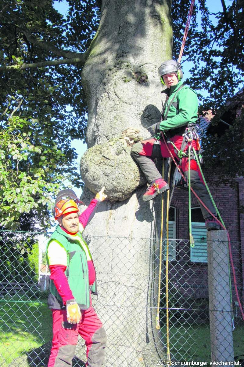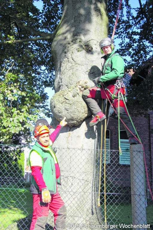 STEINHUDE (gi). Die Straße Am Anger war Mittwochmorgen gesperrt, es wurde von der Fachfirma Baumpflege und Spezialfällung Völkers aus Bordenau eine circa 250 Jahre alte Blutbuche auf dem Grundstück des Küsterhauses gefällt. "Der Baum war durch einen Pilz befallen, die Standfestigkeit dadurch nicht mehr gewährleistet", sagte Baustellenleiter Ralf Grimm von Baumpflege Völkers. Ein entsprechendes Gutachten eines Fachmannes sei zu diesem Ergebnis gekommen. 25 Meter hoch war die Buche, ihr Durchmesser lag bei rund zwei Meter. Nach und nach sägte Baumkletterer Tim Wilken die Äste ab, ein Autokran kam ihm dabei zu Hilfe. Die Maßnahme dauerte mehrere Stunden, zum Schluss wurde der Baumstock gefräst. Foto: gi