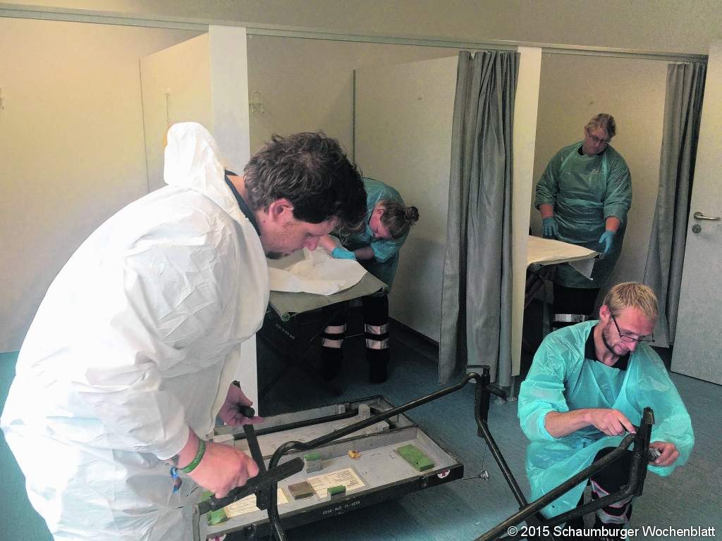 Samstagnachmittag startete dann der größte Einsatz des Wochenendes. Gemeinsam mit der Regionalbereitschaft machten sich Kräfte aus Wunstorf auf den Weg nach Lüchow. Insgesamt waren 22 Helferinnen und Helfer aus Wunstorf an dem Einsatz beteiligt. In einer kurzfristigen Aktion von Polizei und Johannitern sowie weiteren Partnern wie THW und Feuerwehr wurde die Aufnahme von Flüchtlingen vorbereitet. Dies geschah vor dem Hintergrund, dass das niedersächsische Ministerium für Inneres und Sport entschieden hatte, kurzfristig 700 von insgesamt mehr als 7.000 Flüchtlingen, die aus Ungarn nach Bayern geflüchtet waren, aufzunehmen. Die Johanniter bereiteten unter anderem die medizinische Aufnahme der Flüchtlinge vor. Die Wunstorfer Ärztin Imke Loose unterstützte dabei und übernahm auch die ärztliche Leitung der medizinischen Aufnahme. "Unsere Helferinnen und Helfer haben alles gegeben und in einem enormen Kraftakt die Aufgabe, die uns gestellt wurde, gemeinsam gestemmt. Ich spreche allen Beteiligten meinen Dank und größten Respekt aus, ein solcher Einsatz der bis an die Grenzen der Belastung geht, ist nicht selbstverständlich", sagte Timo Brüning, der den Einsatz der Wunstorfer leitete. "Die leuchtenden Augen der Kinder bei der Übergabe einer wärmenden Decke oder die fast grenzenlose Freude über einen frischen Apfel haben uns persönlich beeindruckt und auch bei uns Spuren hinterlassen. Wir sind froh, das wir einen Teil dazu beitragen konnten, den Flüchtlingen nach der Flucht einen Ort der Ruhe und des Ankommens zu schaffen." Foto: privat
