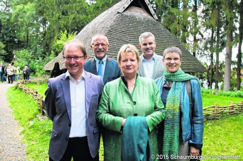 Oerlinghausen (kd). Mit neuen Ideen will das Archäologische Freilichtmuseum Oerlinghausen junge Menschen über die Gefahr des Rechtsextremismus aufklären. Das Projekt dient auch dazu, die eigene Geschichte aufzuarbeiten. Bei einem Besuch in der Bergstadt informierte sich die Schulministerin und stellvertretende Ministerpräsidentin Sylvia Löhrmann über die Arbeit des Museums. 1936, in der Zeit des Nationalsozialismus, entstand am Barkhauser Berg das erste Freilichtmuseum dieser Art in Deutschland. Der Ort wurde nicht zufällig gewählt, denn an dieser Stelle haben einst Menschen gesiedelt, wie Funde belegen. Die Nachbauten der Häuser wurden als "Germanengehöft" bezeichnet. Und auch in der Innenausstattung spiegelte sich die NS-Ideologie. Vieles war keineswegs historisch verbürgt, sondern diente den Machthabern dazu, die Erinnerung an die Germanen zu verklären. "Wir wollen zu unserer Gründungsgeschichte stehen und diese Vergangenheit aufarbeiten", erklärte Moritz Ilemann, der Vorsitzende des Trägervereins gegenüber Ministerin Löhrmann. Mit seinem Angebot will das Museum so manches schiefe Geschichtsbild geraderücken. Dennoch gebe es Rechtsextreme, die Einrichtungen wie das Oerlinghauser Museum für ihre Zwecke nutzen wollen. Das sei keineswegs weit hergeholt, erläuterte Museumsleiter Karl Banghard. Ein Beispiel ist das Wikingermuseum auf der Ostseeinsel Wollin in Polen. Banghard zeigte auf, wie dort rechte Gruppen die Oberhand gewonnen haben und große Treffen organisieren. Man sehe dann Hakenkreuze zuhauf, obwohl dieses Symbol in der Wikingerzeit gar nicht verwendet wurde. "Rechte Gedanken sind in unserer Gesellschaft latent vorhanden", sagte Ilemann. "Wir können im Vorfeld etwas tun, man darf es nicht nur bei Lippenbekenntnissen belassen." Wie das gelingen kann, ermittelt Banghard derzeit durch seinen Forschungsauftrag. Es sind bereits sechs Pilotphasen mit verschiedenen Jugendbildungsstätten gelaufen. "Wir wollen uns auch älteren Schülern gegenüber öffnen", sagte Banghard. Erste Erfahrungen konnte er bereits mit dem Oerlinghauser Niklas-Luhmann-Gymnasium sammeln. Bei dem Forschungsvorhaben sollen allgemeinverständliche Schriften erstellt werden. Aufklärungsarbeit soll auch in den digitalen Medien geleistet werden. Schließlich sollen auch neue Programme für das Museum entstehen. Der Gegensatz zwischen der nationalsozialistischen Geschichtsauffassung und der heutigen soll im Museum in einem der Häuser augenfällig dargestellt werden. "Wir wollen es mit einer Glaswand radikal durchschneiden", erläuterte Banghard. "Auf der einen Seite soll die Einrichtung der NS-Zeit nachgebildet werden, auf der anderen Seite wollen wir den Stand der heutigen Forschung vorstellen." Ministerin Sylvia Löhrmann begrüßte diese Form der geschichtlichen Aufarbeitung. "Wir müssen Jugendliche stark machen, damit sie nicht anfällig werden für rechte Ideologie", sagte sie. Das Thema Erinneurngskultur beschäftige sie schon seit ihrer eigenen Schulzeit. Aufklärung sei schließlich auch ein verfassungsgemäßer Auftrag. Mit Blick auf das Oerlinghauser Freilichtmuseum sagte sie: "Es gilt, einen Mißbrauch des Ortes zu verhindern. Wir haben den Auftrag, daraus einen demokratischen Museumsort zu machen." Den Besuch Löhrmanns hatte die Oerlinghauser Landtagsabgeordnete Manuela Grochowiak-Schmieding vermittelt. Auf Zusagen wollte sich die Ministerin jedoch nicht festlegen, da das Museum finanzielle Mittel nicht von ihrem Ressort, sondern vom Kulturministerium erhält. Zu einem Informationsbesuch hilt sich Schulministerin Sylvia Löhrmann (Mitte) im Archäologischen Freilichtmuseum Oerlinghausen auf. Links Museumsleiter Karl Banghard, rechts die Landtagsabgeordnete Manuela Grochowiak-Schmieding. Dahinter Moritz Ilemann vom Trägerverein und der künftige Bürgermeister Dirk Becker. (Foto: kd)