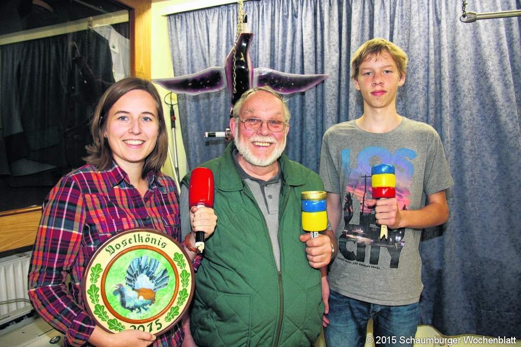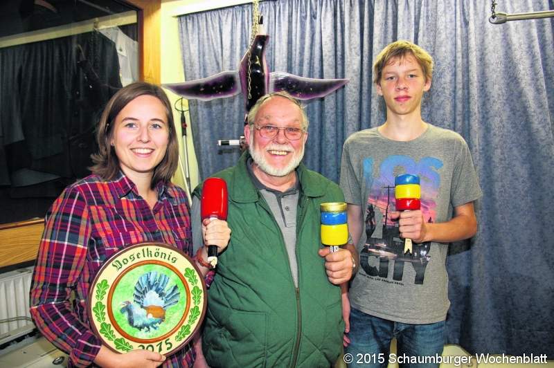 KLEIN HEIDORN (gi). Das Vogelschießen bei den Sportschützen ging dieses Mal überraschend schnell, es dauerte mit 18 Teilnehmern eine Stunde. Grund dafür war auch, dass aufgelegt geschossen wurde und nicht wie sonst üblich stehend aufgelegt. Vogelkönigin (mit Apfel) wurde die amtierende Vereinskönigin Alina Kaiser. Zweiter wurde Fritze Arndt (Krone) und dritter Yannic Hemmerling (Zepter). Foto: gi