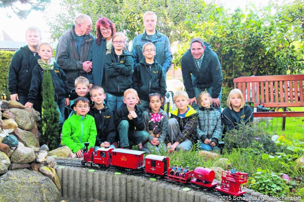 WUNSTORF (gi). Eine Gruppe der Kinderfeuerwehr "Blaulicht-Hüpfer" gestaltete einen Dienst einmal ganz anders. Die Jungen und Mädchen gingen mit Betreuerin Anke Brunner zu Fuß in die Mühlenkampstraße und besuchten eine Garteneisenbahn. Hobbyeisenbahner Friedmar Giebel und Enkel Jannik hatten die Kinder eingeladen. Zur Überraschung des Feuerwehrnachwuchses "sauste" ein LGB-Löschzug mit einer Dampflok zum Einsatz, es fehlte nur noch das Ertönen des Martinshornes. Die Kinder durften selbst Hand anlegen und den Zug steuern. Das gelang nicht immer, denn die jungen Gartenbahnfahrer hatten mitunter einen Hang zum schnellen Fahren. Auf der anderen Anlagenseite zuckelte ein Personenzug lang, den die jungen Gäste auch selbst steuern durften. Zum Schluss setzte Friedmar Giebel noch ein Krokodil samt Waggons der Rhätischen Bahn auf die Schienen. Einhellige Meinung der Blaulicht-Hüpfer: Das war ein toller Nachmittag. Wer Lust hat, bei der Kinderfeuerwehr mitzumachen, ist gern gesehen jeden Dienstag von 17 Uhr bis 18.30 Uhr am Feuerwehrgerätehaus in der Barnestraße. Derzeit gehören zur Kinderfeuerwehr der Wunstorfer Ortswehr fast 40 Kinder. Gegründet wurde sie am 10. Oktober 2014. Foto: gi