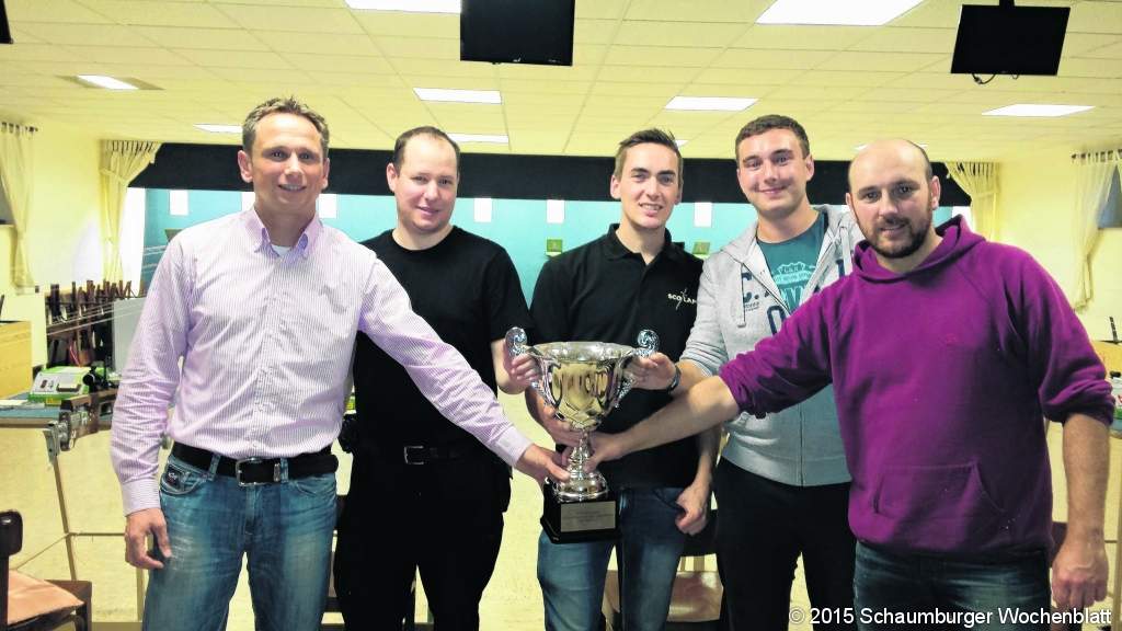 LUTHE (mk). Das diesjährige Luther Dorfpokalschießen im Schützenverein Luthe e.V. von 1936 war sehr gut besucht. Die verschiedenen Mannschaften aus Vereinen und Gruppen sind bei selbstgemachtem Kuchenbuffet und herzhaften Snacks in den Wettkampf gestartet. Spannend wurde es, als es ein Stechen zwischen den führenden drei Mannschaften gab, aus dem die Feuerwehrmannschaft mit Holger Seidel, Andre Hohls, Lennart Rösemann und Andre Schrader den 1. Platz machte. Foto: privat