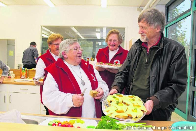REHBURG (jan). "Wenn ich mir diesen Berg von Brötchen vorstelle!" Brötchen schmieren ist eine der vorrangigen ehrenamtlichen Aufgaben von Renate Meyer gewesen bei den Blutspendediensten des Rehburger Ortsvereins des DRK und das viermal pro Jahr mehr als 50 Jahre lang. Weil es gesundheitlich nun doch nicht mehr so gut gehe, die vielen Stunden der Blutspende in der Rehburger Grundschule zu arbeiten, hat sich die 81-Jährige entschieden, aufzuhören. Zum Abschied gab es großen Dank für die ehrenamtliche Arbeit vom Vorsitzenden des Ortsverbandes, Felix Watermann. Kleine Geschenke, die Einladung doch gerne jederzeit auf einen Kaffee oder ein Brötchen zu den Blutspendeterminen zu kommen, rundeten den Dank ab – und die gemeinsamen Überlegungen, wie viele Brötchen es denn nun vermutlich waren, die Renate Meyer in mehr als 50 Jahren beim DRK geschmiert hat. Foto: jan