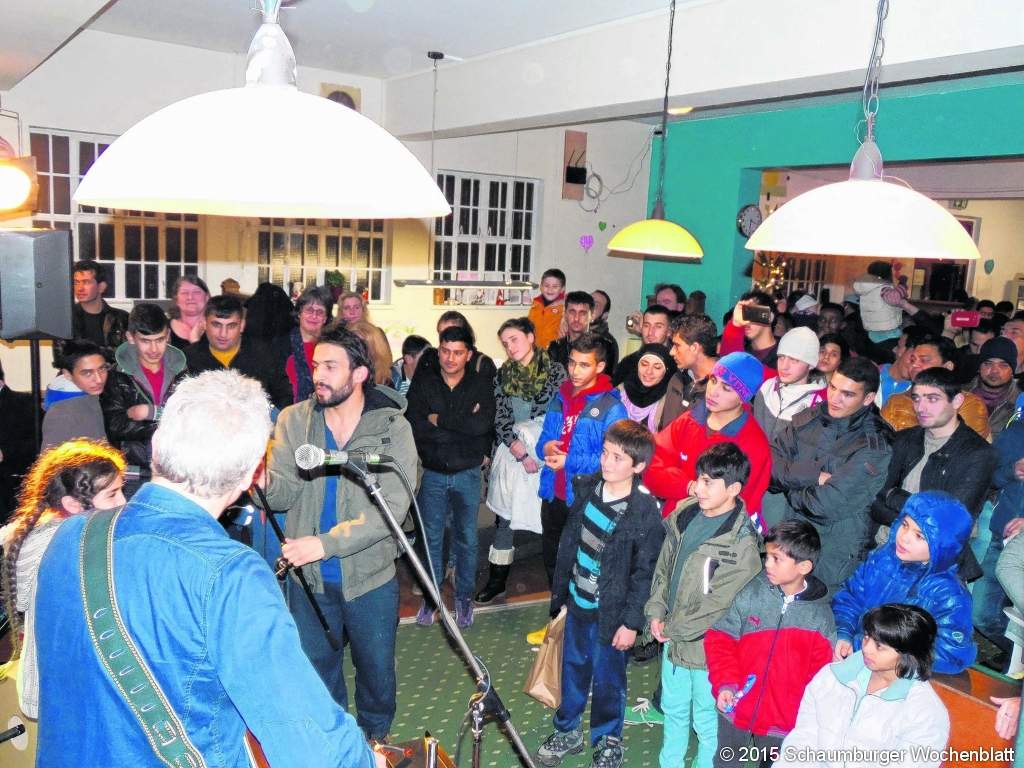Weder Religion noch Herkunft trennten die Tänzerinnen und Tänzer, ob Klein oder Groß, in ihrer gemeinsamen Aktion. "Mit der Adventsfeier wollten wir Abwechslung und Freude in das Leben der Gäste und unseres einbringen" so die Einrichtungsleiterin Tabea Beer. Neben dem weihnachtlich geschmückten Café Welcome wurde auch musikalisch einiges geboten. Micky Meinert und seine Freunde hatten von der Idee über Mira Sic erfahren, die Micky beim Ohrenschmaus angesprochen hatte und sagten sofort zu. Mit Reggae-Musik von Bob Marley oder "Lass Sie uns umarmen" aus der Single "Wahnsinnlich" bescherten die Musiker ihren Gästen einen Abend voller Leichtigkeit und Beschwingtheit. Dass der Arbeiter-Samariter-Bund mit seinen 50 Festangestellten und 100 freiwilligen Helfern einen fundamentalen Beitrag zur Integration von geflohenen Menschen beiträgt, sah man in der Dankbarkeit der Gäste, die sich endlich in Frieden und Sicherheit den schönen Seiten des Lebens hingaben. Unter ihnen war auch Judi Hami (18), die als kurdisch-muslimische Syrerin seit gerade mal seit 29 Tagen mit ihrer Familie in Deutschland ist. Mit selbst beigebrachtem Englisch sowie Händen und Füßen suchte sie den Kontakt zu Einheimischen. Den fand sie in auch Person der stellvertretenden Bürgermeisterin Christ-Dore Richter, die die Adventsfeier besuchte. Als ehemalige langjährige Rektorin der Grundschule in Hakedahl und Vorsitzende im Ausländer-Beirat liegen ihre Schwerpunkte im Bereich Soziales, Schule und Kultur. Da sie sich selbst als Zugewanderte sieht – sie stammt aus Oberschlesien, dem heutigen Polen – war es ihr ein persönliches Anliegen, dieser Aktion beizuwohnen. "Die Gäste empfinden es als Ehre, wenn sich jemand aus der Politik um sie kümmert" so die stellvertretende Bürgermeisterin. Sich um andere zu kümmern ist auch für Alban Dega (20) eine Lebensaufgabe. Der selbst aus Albanien Geflohene kam vor einem Jahr nach Deutschland und fand in der schönen Stadt am Teutoburger Wald eine neue Heimat. Nach vielen Irrwegen, verursacht durch den "Königsteiner Schlüssel", der festlegt, wo ein Flüchtling aufgenommen wird, hilft er nun selbst im Arbeiter-Samariter-Bund geflohenen Menschen. Im Rahmen seiner Ausbildung zum Kaufmann für Büromanagement lernt er hierfür die Grundsteine der Bürokommunikation. Bis in die Abendstunden genossen alle Akteure die friedliche und inspirierende Musik, gespielt auf Instrumenten aus aller Welt und dazu das leckere Weihnachtsgebäck, das die freiwilligen Helfer dazu reichten.